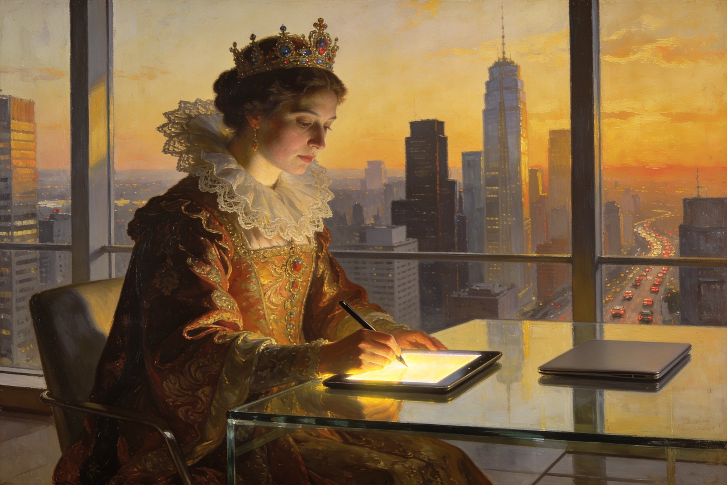 “Lady Writer in the AI Renaissance” This image was generated by Perplexity.AI